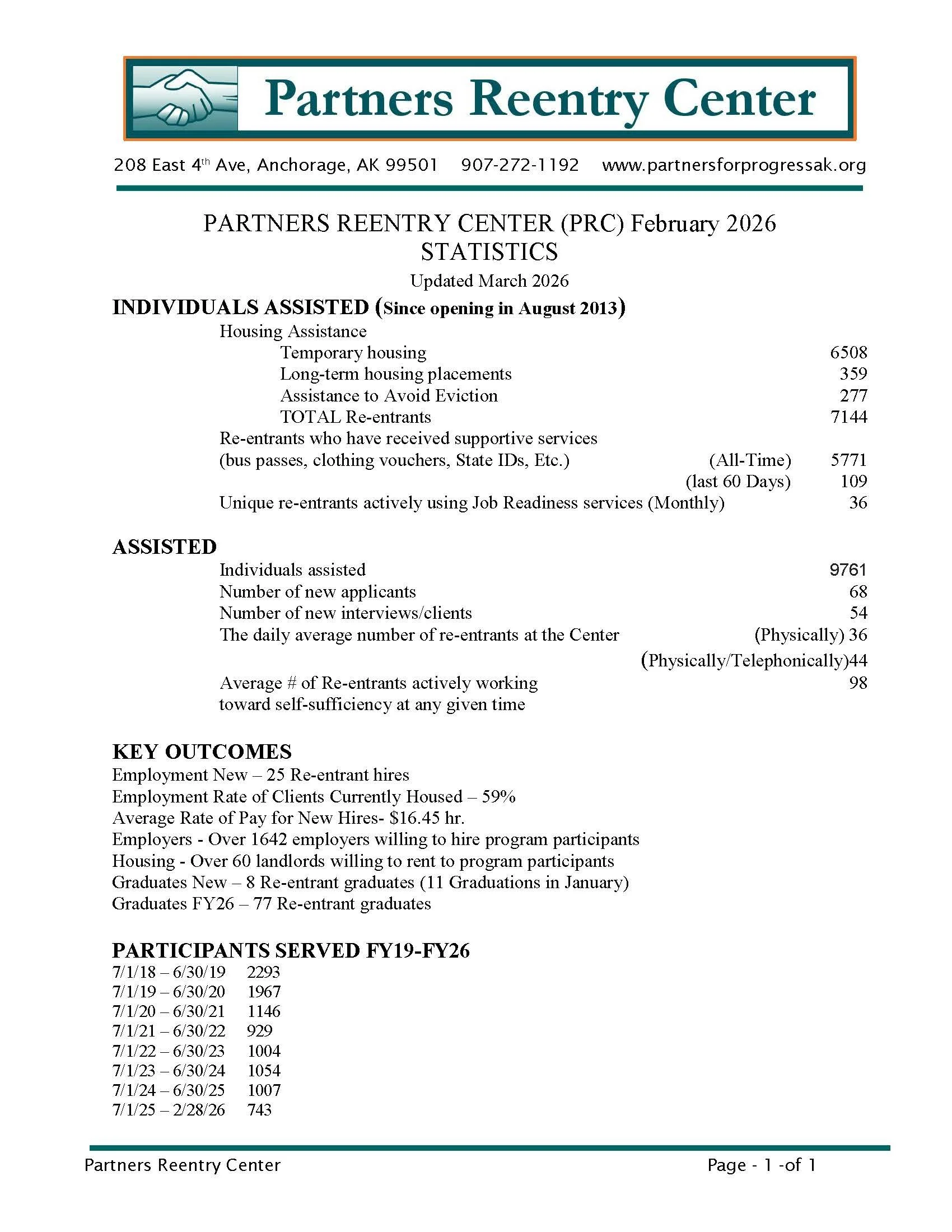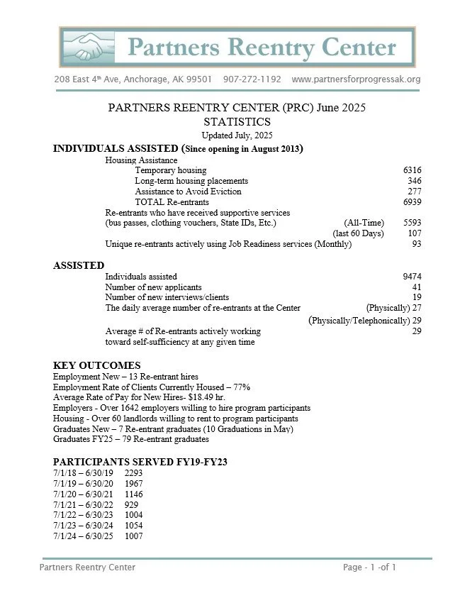 Partners Reentry Center Statistics